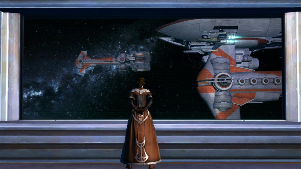 During the course of an investigation into a series of mysterious disappearances of Jedi Knights and Masters, both Sarait and Tyrusso were captured and mind controlled by a powerful Sith Artefact. The two were the last standing in the confrontation when the Aurora Core found the errant faction Zakuulan Scions & Knights responsible for the disappearances.The Zakuulans were acting under the influence of the ancient sith Darth Nalar, who had trapped his own spirit in a holocron of his making. When the artefact, a mass mind control device, was destroyed, it acted as a catalyst and amplifier to a force bond already forming between the masters. The result was an unusually powerful force bond the two have been forced to adapt to, and learn to live with.While the bond is not secret, both Masters try not to draw attention to it for two primary reasons. The most important being that the bond could be used against one or the other. The second being the unfortunate, and incorrect, assumptions that are sometimes made about the nature of their relationship.
